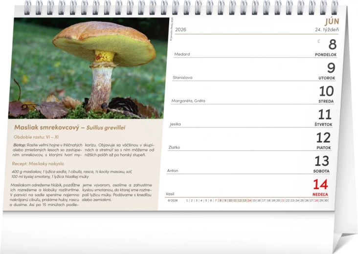 Pilzsammler-Kalender ist ideal für enthusiastische Pilzsammler. Beinhaltet bekannte und weniger bekannte Arten, Beschreibung des Biotops, Küchennutzung und ihren Einfluss auf die Gesundheit.