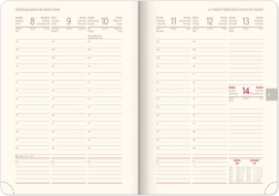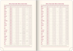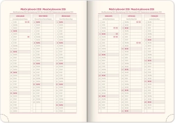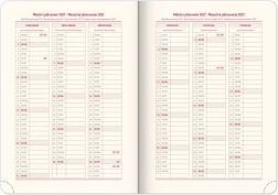 Einen Wochenkalender mit tschechisch-slowakischem Kalender und Übersetzungen ins Englische, Deutsche, Ungarische und Russische.