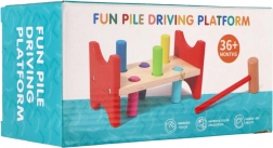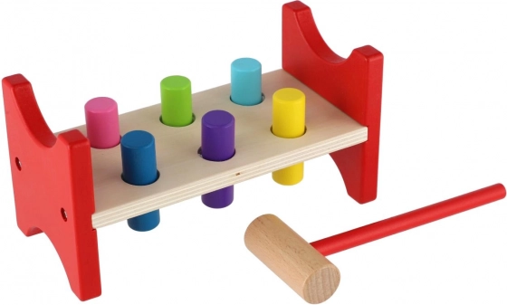 Dieses zeitlose Holzspielzeug unterstützt natürliches Lernen durch Spiel. Kinder klopfen mit dem Hammer die bunten Stifte in die Öffnungen und trainieren dabei Zielgenauigkeit, Rhythmus und Geduld. Die stabile Holzbank in Kombination mit sicher abgerundeten Kanten gewährleistet eine lange Lebensdauer und sicheres Spielen.