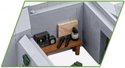 Zum Modell gehören auch Zubehörteile wie Militärkisten, Pflanzentarnungen, Lebensmittel- oder Sandsäcke. Im Bunker finden Sie zudem eine drehbare KwK 39L Kanone, eine Funkstation, Granaten und Waffen vom Typ MP-40 und Mauser Kar98k.