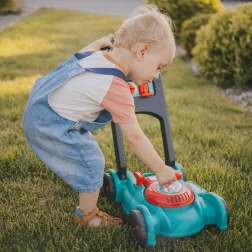 Perfektes Set für kleine Kinder, die gerne ihre Eltern bei der Gartenarbeit nachahmen! Dieser Kinder-Rasenmäher hat Räder, die leicht die von den Kindern bestimmten Wege fahren. Er garantiert den Kindern stundenlangen aktiven Spaß im Freien.