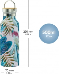 Stilvolle Thermoflasche BAAGL mit Bambusdeckel, die heiße Getränke bis zu 12 Stunden warm und kalte erfrischend bis zu 24 Stunden hält. Das Edelstahl-Design und die zertifizierte Qualität sind die Hauptvorteile.