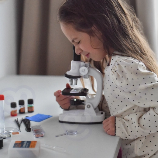 Im Lieferumfang ist ein Smartphone-Adapter enthalten, sodass sich Beobachtungen bequem fotografieren und teilen lassen. Das umfangreiche Zubehörpaket (Objektträger, Fläschchen, Pinzette, Pipette u. a.) unterstützt sicheres und spielerisches Experimentieren und fördert wissenschaftliche Fähigkeiten, Geduld sowie die Augen-Hand-Koordination.