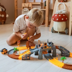 Dieses große Konstruktionsset verbindet die Welt der Eisenbahnen und Rennstrecken in einem unterhaltsamen Paket. Dank der elastischen, ineinander einklickbaren Teile erstellt das Kind im Handumdrehen Geraden, Kurven, Auffahrten und Brückenabschnitte. Für eine realistische Atmosphäre sorgen Baumaschinen, Tore, Schilder und weitere Dekorationen, die Vorstellungskraft und selbstständiges Spielen anregen.