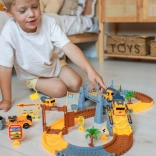Enthalten ist eine angetriebene Lokomotive zum Transport der „Ladung“, kleine Fahrzeuge für die Arbeiten auf der Baustelle sowie ein umfangreiches Set an Zubehör. Der Aufbau ist intuitiv und stabil, sodass Kinder die Strecke immer wieder umbauen und neue Varianten ausprobieren können. Batterien sind im Lieferumfang, der Spaß kann sofort beginnen.