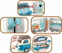 Entdecken Sie die Welt der erstaunlichen Abenteuer mit dem außergewöhnlichen Wohnwagen mit Anhänger der Marke Woopie! Dieses bunte Spielzeug im Retro-Stil ist ideal für kleine Entdecker, die kreative Spiele lieben. Der Wohnwagen mit Anhänger verfügt über öffnende Elemente, ein realistisches Interieur und Licht- und Soundeffekte, die jede Reise unvergesslich machen.