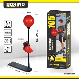 Das Kinder Boxset der Marke Woopie bringt Freude und viele Gelegenheiten für Bewegung und Training. Bestandteil des Sets sind Boxhandschuhe und ein verstellbarer Stand mit Boxsack. Dieses Set ist für Kinder ab drei Jahren gedacht und passt sich dank der Möglichkeit der Einstellung von 70 bis 105 cm an deren Größe an.