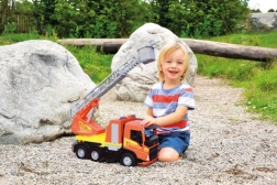 Das Modell ist aus robustem Kunststoff gefertigt und verfügt über stabile Metallachsen (6 mm) für eine lange Lebensdauer – auch beim Spielen im Garten oder auf anspruchsvollerem Terrain. Das Spielzeug lässt sich leicht bedienen, hat eine detailreiche Kabine und fährt dank mehrerer Achsen besonders geschmeidig.