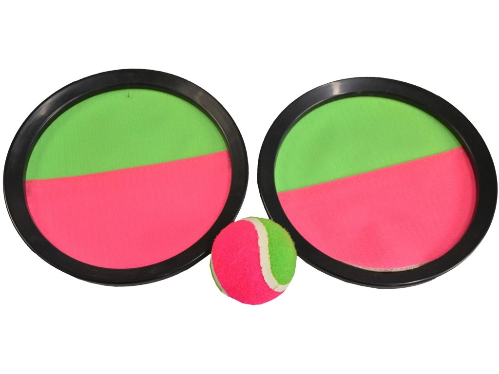 Genießen Sie unterhaltsame Stunden mit dem Catch Ball Spiel im Freien. Dieses Spiel ist sowohl im Sommer am Wasser als auch im Winter an einem schönen Tag draußen großartig. Es enthält zwei Kunststoffscheiben mit Klettverschluss-Oberfläche und einen Ball, der sanft an der Scheibe haftet. Ein Spieler wirft einfach den Ball, und der andere fängt ihn mit der Scheibe.