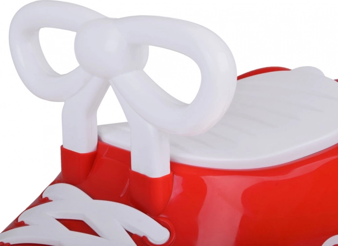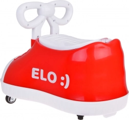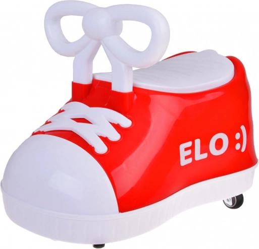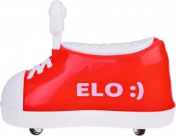 Das rote Fahrspielzeug Elo zeichnet sich durch sein einzigartiges Aussehen aus, das sofort Aufmerksamkeit erregt. Das stilvolle Design in Form eines großen roten Schuhs mit den Aufschriften ELO :) und OLE :) zaubert ein Lächeln auf jedes Gesicht.