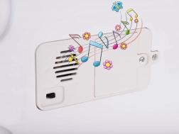 Fröhliche Musik, die durch Drücken eines Knopfes an der Unterseite des Fahrzeugs aktiviert wird, bietet zusätzlichen Spaß für kleine Fahrer!