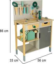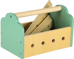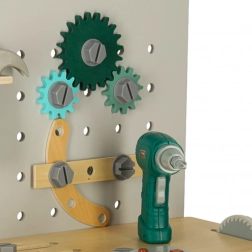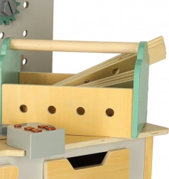 Werkzeugset für Kinder beinhaltet Mini-Werkzeuge zur Übung der Feinmotorik und eine sichere Umgebung, in der das Kind die Fähigkeiten erlernt, die zur Arbeit mit Werkzeugen erforderlich sind. Mit diesem Set lernt das Kind, Werkzeuge zu unterscheiden und die Regeln für den Umgang mit ihnen zu verstehen.