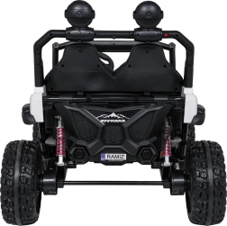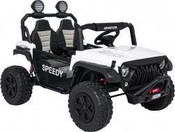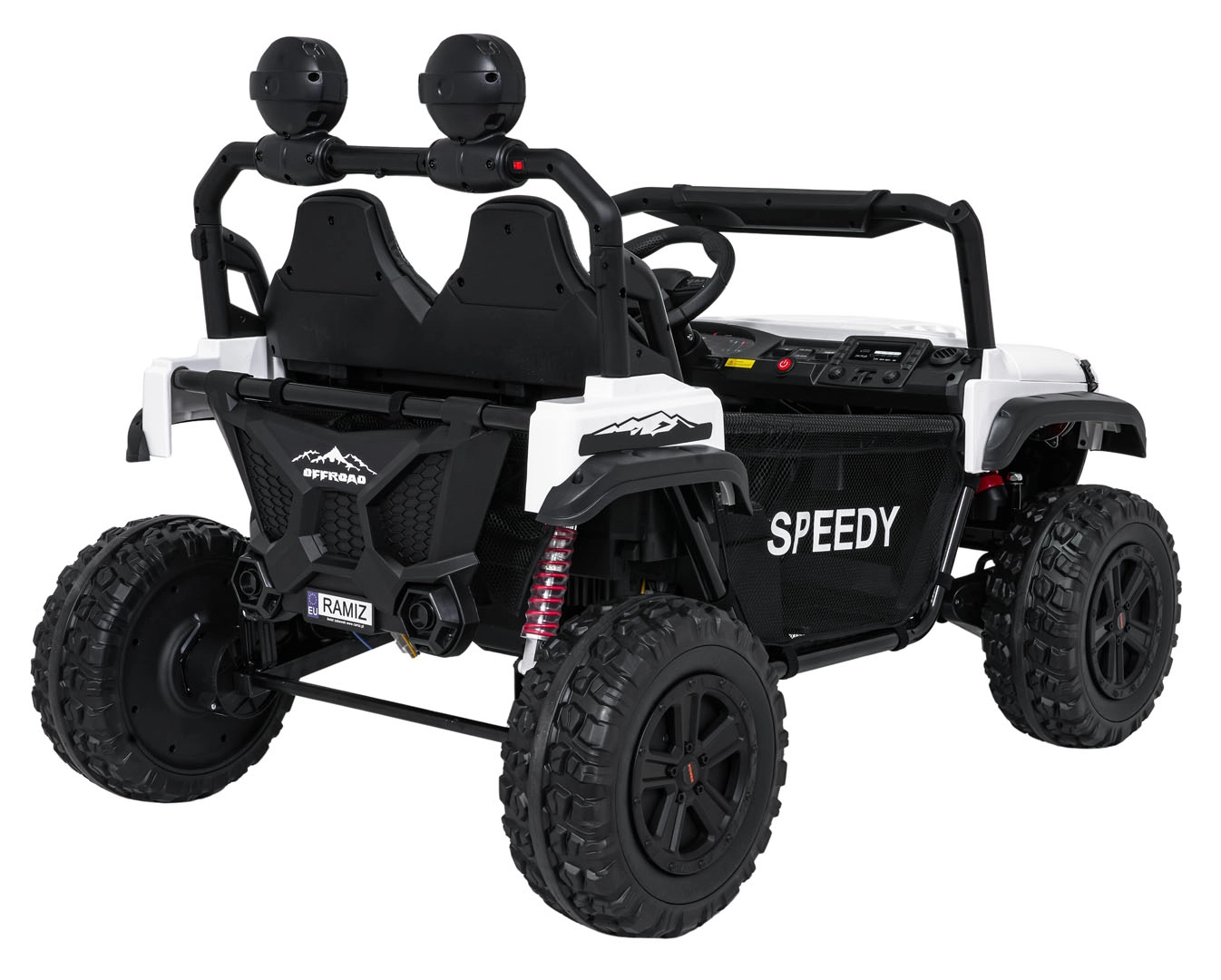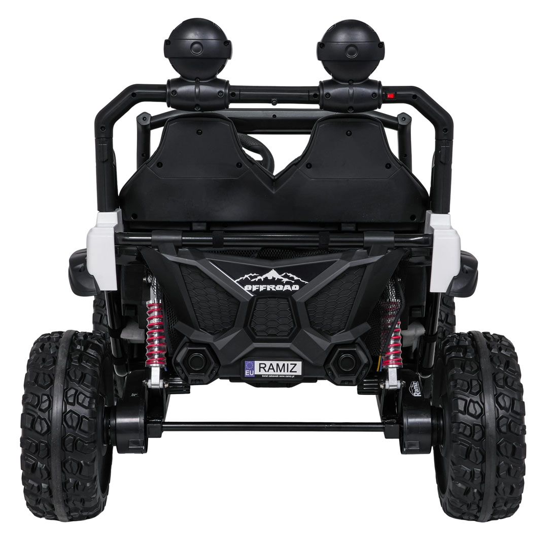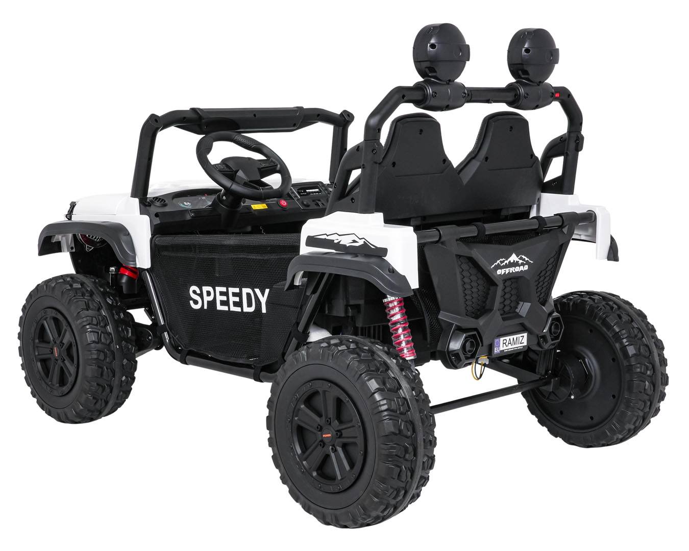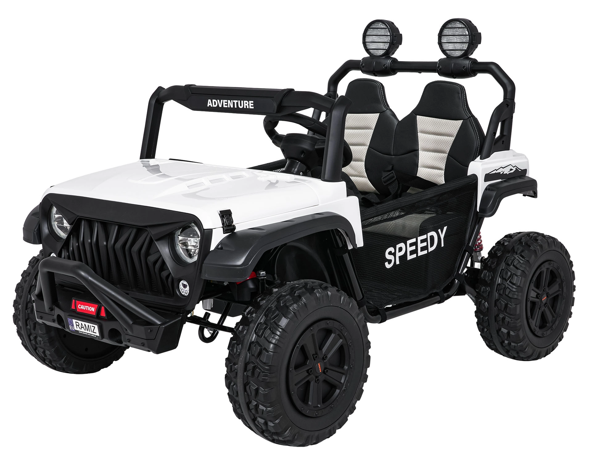 Der robuste elektrische Kinder-Geländewagen PASSION 4x4 bietet 4 Motoren mit 200 W, 24-V-Batterie, EVA-Schaumräder und einen zweisitzigen Sitz aus Ökoleder mit Gurten. Dank LED-Beleuchtung, sanftem Anfahren und 2,4-GHz-Fernbedienung mit Sicherheitstaste Stop ist die Fahrt sowohl spaßig als auch sicher.