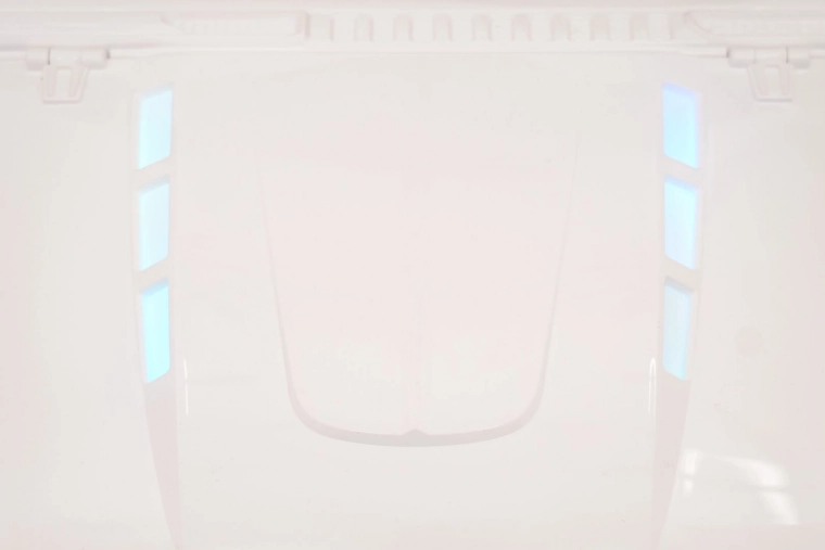 - LED-Frontscheinwerfer, beleuchtete Motorhaube, Lichtschalter; oberer Rahmen für Batterien vorbereitet (nicht enthalten)