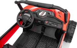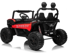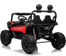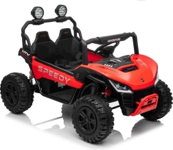 Entdecken Sie den Spaß mit Buggy Speedy 4x4, ausgestattet mit einem starken Motor und einer dualen 12V-Batterie. Dank der EVA-Pianoräder und den einstellbaren hinteren Stoßdämpfern bietet es eine sanfte und komfortable Fahrt.