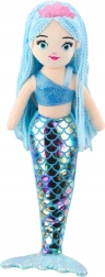 Die plüschige Meerjungfrau trägt ein glitzerndes One-Shoulder-Top in Blau und ist mit einer rosa Krone verziert, was ihr ein märchenhaftes Aussehen verleiht. Sie passt hervorragend in die Welt der magischen Unterwasserabenteuer, die Kinder lieben.