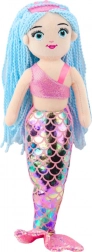 Diese bezaubernde Plüsch-Meerjungfrau zieht nicht nur durch ihre Größe Aufmerksamkeit auf sich, sondern vor allem durch ihr ästhetisches und magisches Aussehen. Der Schwanz besteht aus einem Material, das schimmernde Schuppen mit holografischem Effekt nachahmt. Lange, blaue Haare sind in Form von Strähnenzöpfen gehalten, was eine atemberaubende Figur aus einem Unterwasserreich schafft.