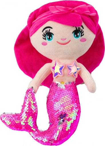 Rosa Plüsch-Meerjungfrau mit Paillettenflosse 30 cm