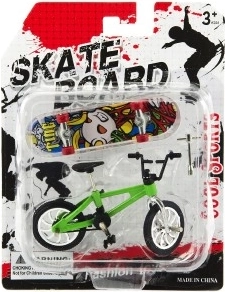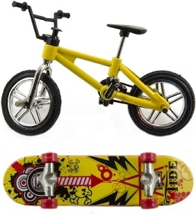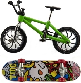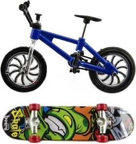 Dieses kompakte Set kombiniert ein Finger-BMX-Rad und ein Skateboard, sodass Kinder verschiedene Fahrstile und Tricks ausprobieren können. Die Mini-Modelle sind detailliert gestaltet, besitzen bewegliche Räder und leicht bedienbare Elemente für flüssige Tricks auf dem Tisch, der Bank oder häuslichen Hindernissen.