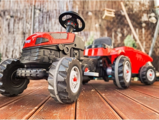 Der Trettraktor Farmer GoTrac MAXI mit Anhänger ist das ideale Geschenk für jedes Kind. Er verfügt über ein patentiertes Lenksystem, das auch den jüngsten Anwendern das Fahren erleichtert.