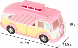 Dieser niedliche Eiscreme-Camper in Rosa-Creme-Farben verwandelt jedes Zimmer in ein kleines Bistro auf Rädern. Kinder können das Dach und die Türen öffnen, die Markise ausziehen und Gäste am Tisch mit Sonnenschirm bedienen. Realistische Interieur-Details fördern kreative Geschichten und stundenlangen Spielspaß.