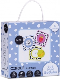 Entdecken Sie spielerisches Lernen mit dem Gagagu-Puzzle. Runde Plättchen mit farbenfrohen Illustrationen von Obst und niedlichen Tiergesichtern wecken die kindliche Neugier, erweitern den Wortschatz und stärken die Auge-Hand-Koordination. Robuste Materialien sorgen für eine sichere und langlebige Nutzung.