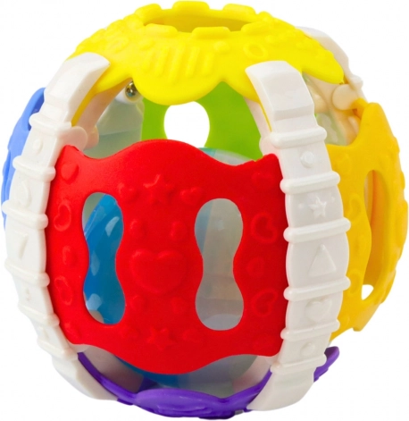 Die bunte Oberfläche des Balls mit verschiedenen Texturen regt zusätzlich zum Spielen und zur Entwicklung manueller Fähigkeiten an. Dank durchdachtem Design und hoher Qualität der Ausführung ist das Spielzeug ein ideales Werkzeug zum Lernen durch Spielen und eine sichere Alternative für die kleinsten Kinder.