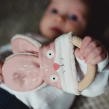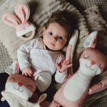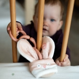 Der Beißring Maus besteht aus Stoff mit einem Originaldruck von Jitka aus Ababu. Er ist für Babys zertifiziert und erfüllt alle EU-Normen für Kinder ab 0 Jahren. Dieses Spielzeug kombiniert ein weiches Stoffgesicht aus 100% Baumwolle mit einem handgefertigten Buchenholzring. Das Bambusfrottee, das die Rückseite bildet, ist aus den hochwertigsten Materialien aus Frankreich.