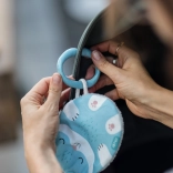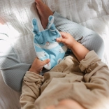Die Pflege des Spielzeugs ist einfach. Vor der ersten Verwendung empfehlen wir, es ohne Ring zu waschen. Wenn der Ring abgenutzt ist, können Sie ihn leicht durch einen neuen ersetzen. Das Spielzeug nicht bügeln und nicht im Trockner trocknen. Kleine Druckschäden sind normal und werden nicht als Mängel angesehen.