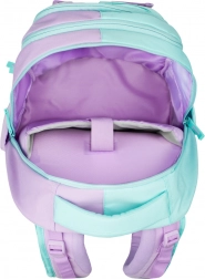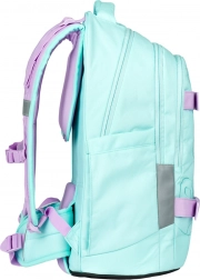Der Schulrucksack Skate Max Sweet besteht aus recyceltem und wasserdichtem Material, das Sicherheit und Langlebigkeit gewährleistet. Er verfügt über einen abnehmbaren Hüftgurt und eine spezielle Verstärkung aus EVA-Schaum, die seine Form bewahrt. Der verstärkte Griff erhöht die Tragkraft auf bis zu 8 kg. Der Rucksack passt für Kinder mit einer Größe von 155-185 cm, was Schülern ab der 3. Klasse entspricht.