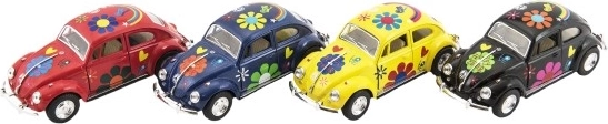 Versetzen Sie sich in die goldene Ära der Straßen mit dem detailreich gestalteten Modell KINSMART VOLKSWAGEN Beetle. Dieses Metallmodell mit einer Länge von 13 cm überzeugt durch hochwertige Verarbeitung, farbenfrohe Blumenmotive und realistische Details, die Kinder wie auch erwachsene Sammler begeistern.
