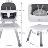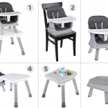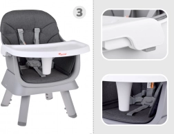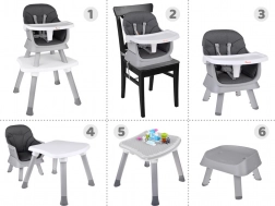 Der multifunktionale Hochstuhl 6in1 ist die ideale Lösung für Eltern, die eine praktische und stilvolle Ausstattung suchen, die sich den wechselnden Bedürfnissen des Kindes anpasst. Vom Hochstuhl für selbstständiges Essen über einen Kinderhocker bis hin zu einer vollständigen Tischkombination für Spiel und Lernen.