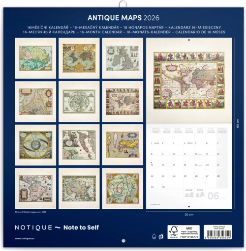 Der Notizkalender Alte Karten 2026 ist der perfekte Begleiter zur Organisation täglicher Aktivitäten. Er enthält: