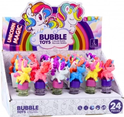 Entdecken Sie die Freude an farbigen Seifenblasen inspiriert von der Welt der Einhörner. Dieses Set kombiniert traditionelle Seifenblasen mit einer niedlichen Einhornfigur, die einen beweglichen Kopf und bewegliche Beine für zusätzliche Interaktivität hat.