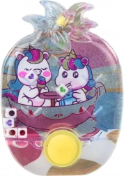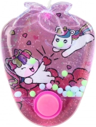 Dieses Wasser-Spiel mit dem Motiv der zauberhaften Einhörner ist ein klassisches Spielzeug, das seit vielen Jahren Kindern unterschiedlichen Alters Freude bringt. Dank der kompakten Maße und des einfachen Mechanismus ideal für Reisen, die Schule oder Spaziergänge. Das Spiel besteht darin, einen Knopf zu drücken, der bunte Ringe oder Kugeln in einem durchsichtigen Behälter voller Flüssigkeit in Bewegung setzt. Ziel ist es, diese Elemente auf Stifte oder bestimmte Stellen zu platzieren.