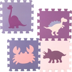 Puzzles isolieren von der kalten Bodenfläche und dämpfen Stürze hervorragend, was sie zu einem idealen Ort zum Krabbeln, Spielen und Laufenlernen macht. Die rutschfeste Struktur sorgt dafür, dass das Kind sowohl im Zimmer als auch auf der Terrasse sicher spielen kann. Die Farbtöne Rosa, Lila und Türkis verleihen der Matte einen modernen Look und stilvollen Akzent fürs Kinderzimmer.