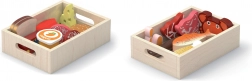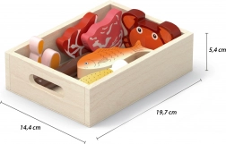 Dieses Holz-Set mit Lebensmitteln besteht aus hochwertigem Holz, das seine Langlebigkeit gewährleistet. Ökologische und sichere Materialien sowie Farben, die bei der Herstellung verwendet werden, stellen sicher, dass das Spielzeug für Kinder geeignet ist.
