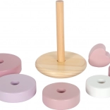 Entdecken Sie den zauberhaften Holzstapelturm, der neben Bildung auch Unterhaltung für Ihr Kind bringt. Dieses Spielzeug ist ideal zur Förderung der Feinmotorik, Konzentration und Größenwahrnehmung. Der Kinderturm enthält verschiedene pastellfarbene Ringe, die auf einen beweglichen zentralen Stab mit Herzaufsetzung gesteckt werden.