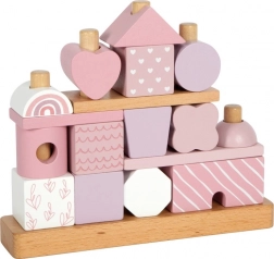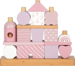 Holzstapelhaus von der Marke Small Foot ist ideal zum Spielen und als stilvolles Accessoire für das Kinderzimmer. Es enthält 18 verschiedene Formen in sanften Pastellfarben, die die Kreativität und Motorik der Kinder fördern.