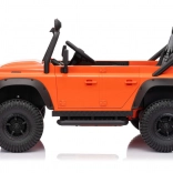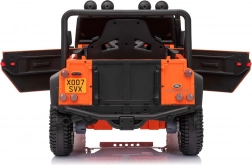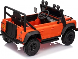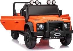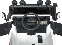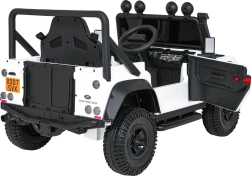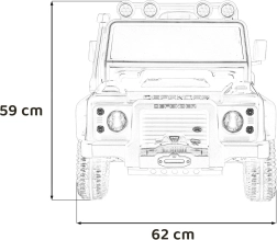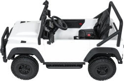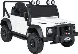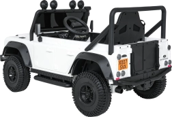 Das robuste Offroad-Design, inspiriert vom ikonischen LAND ROVER DEFENDER, begeistert kleine Fahrer und Eltern. Zwei leistungsstarke Motoren 2x100 W in Kombination mit dem 24V-7Ah-Akku gewährleisten eine gleichmäßige Fahrt, die Funktion Soft Start (sanftes Anfahren) und zwei Geschwindigkeiten tragen zu sicherem Handling bei. EVA-Räder 25×9 cm und vordere sowie hintere Federung bieten Komfort auch auf unebenem Untergrund.