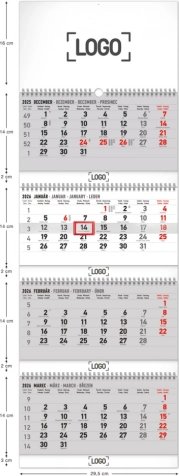 Praktischer Viermonatskalender mit den Maßen 29,5 x 84,5 cm lässt sich dank Doppelschnecke leicht auf A4-Größe zusammenklappen. Ermöglicht die Vorschau von vier Monaten gleichzeitig.