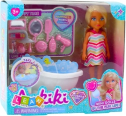 Der Satz Mini Puppe Ankiki mit Wanne ist eine großartige Wahl für kreatives und lehrreiches Spielen. Er ist geeignet für Kinder, die Spaß beim Baden und Pflegen haben möchten. Die Puppe Ankiki trägt farbenfrohe Kleidung und hat niedliche blonde Haare, was die kindliche Vorstellungskraft fördert.