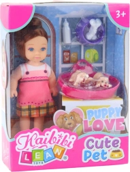 Kinder können sich auf zwei kleine Welpen freuen, um die sie sich kümmern, füttern und in ein rosa Bettchen mit Pfotenmuster legen können. Mit der Fütterungsflasche und der lila Schale mit Knochen können Kinder realistische Pflegeszenen nachspielen und so Empathie, Kreativität und manuelle Fähigkeiten entwickeln.
