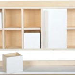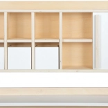 Enthält drei Schubladen, ein Seitenfach und ein hinteres Regal mit Schiebetüren für ausreichend Platz zur Aufbewahrung.