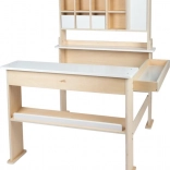 Der hölzerne Verkaufsstand ist eine großartige Ergänzung für die Spielwelt Ihrer Kinder, die Kreativität und Fantasie anregt. Dank der robusten Konstruktion und hochwertigen Materialien ist er nicht nur schön anzusehen, sondern auch sicher und langlebig für langes Spielen. Der Stand ist so gestaltet, dass er die Kommunikations- und Sozialkompetenzen von Kindern fördert und sie an grundlegende Regeln sozialer Interaktion heranführt.
