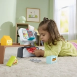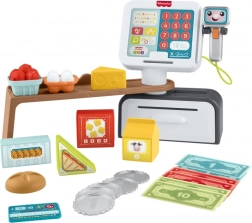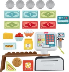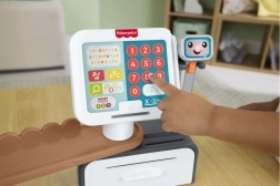 Die sprechende Fisher‑Price Kasse macht aus jedem Kaufmannsladen ein spielerisches Lernerlebnis. Kinder können Lebensmittel scannen, große bunte Tasten drücken, Geldscheine und Münzen in die Schublade legen und mit der Karte bezahlen. Umfangreiches Audi-Feedback mit mehr als 150 Geräuschen und Sätzen unterstützt natürliches Lernen und den Wortschatzaufbau.