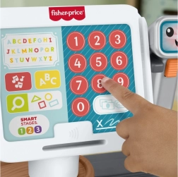 Dank Smart Stages wählen Sie aus drei Schwierigkeitsstufen, die mit dem Kind mitwachsen – vom einfachen Entdecken bis zu fortgeschrittenen Rollenspiel-Szenarien. Die Globus-Taste ermöglicht das schnelle Umschalten der Sprachen (Tschechisch, Slowakisch, Englisch, Ungarisch, Polnisch), sodass kleine Verkäufer auch Fremdsprachenwörter lernen.
