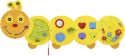 Das Wandspiel aus Holz Raupe Junior ist eine hervorragende Wahl für sinnvolles Spielvergnügen ab 18 Monaten. Die farbenfrohe Gestaltung und die verschiedenen Spielelemente begeistern auf den ersten Blick, während die stabile Wandkonstruktion Platz spart und eine sichere Nutzung gewährleistet.
