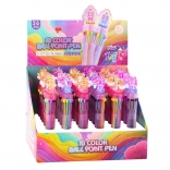 Der Einhorn-Mehrfarbenstift enthält einen automatischen Farbwahlmechanismus - einfach die Taste an der Seite drücken und die gewünschte Farbe wählen. Der Stiftkörper ist mit einem regenbogenfarbenen Effekt und einer transparenten Einhornverzierung oben verziert, die Aufmerksamkeit erregt und den Stift zu einem beliebten Accessoire jedes Kindes macht.
