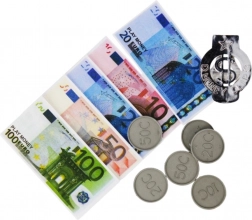 Im Set finden Sie farbenfrohe Banknoten in verschiedenen Werten und Plastikmünzen im Cent- und Eurodesign. Alles ist in einer bunten Blisterverpackung des Typs Euroaufhänger verpackt, die die Lagerung und Präsentation des Produkts erleichtert. Dieses Set ist ideal für Rollenspiele zu Hause, im Laden oder Restaurant und eignet sich auch hervorragend als didaktisches Hilfsmittel in Kindergärten und Grundschulen.